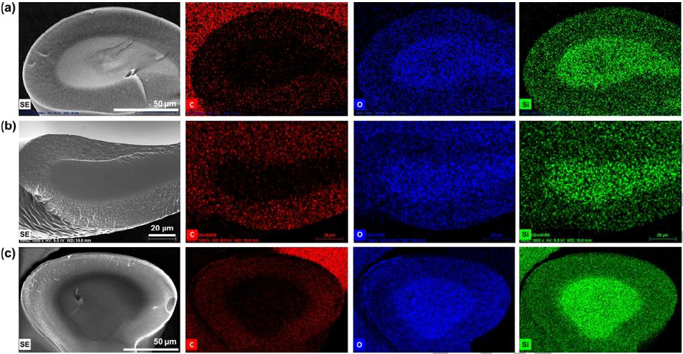 RS/silica composite precursor containing either Rhodamine B or sucrose as model drug was dried in a single droplet drying apparatus. Microparticles with distinct core-shell structure were produced by one-step drying for all compositions, while Rhodamine B showed uneven distribution in core and shell regions. At 5% (w/w) loading, it influenced shell formation process by producing dispersible initial shell and altered particle surface morphology into wrinkling appearance, while similar effects were not observed for sucrose. Decreasing the loading to 0.017% reduced the influence. The observations might be attributed to the properties of Rhodamine B, which affect its migration behaviour during drying.